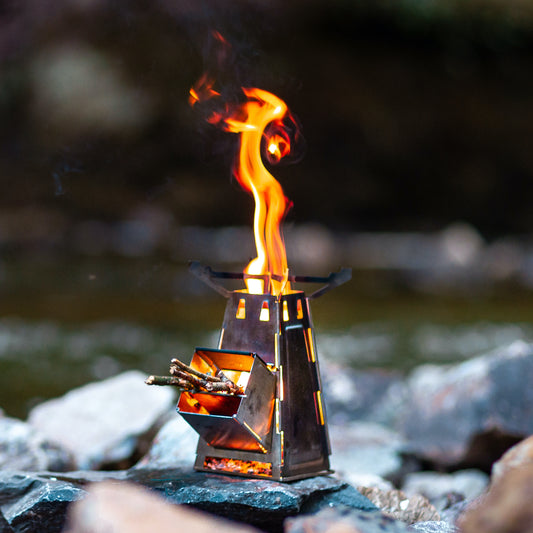 The Firetower is a lightweight foldable rocket stove designed to be very compact and easy to set up. In its cover bag, the Firetower is no bigger than a small book. Being so compact it is easy to take this stove everywhere you wish to go.